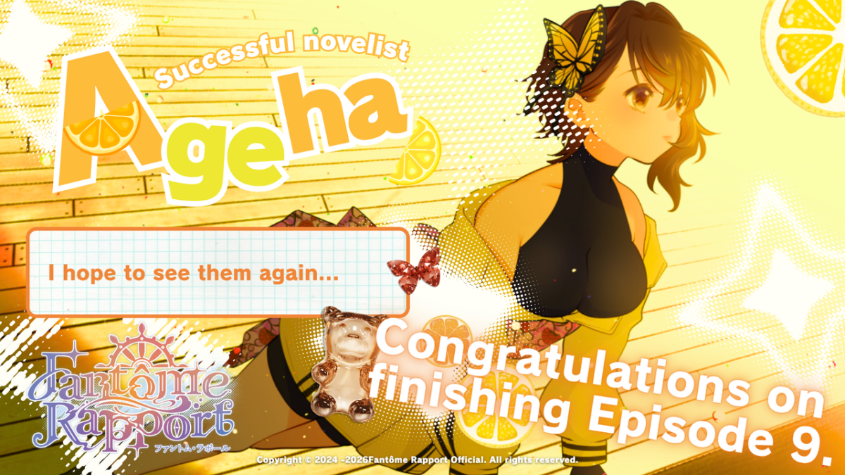 Congratulations on finishing Episode 9: ⚓ Ageha.